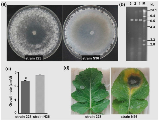 3.1. Strain 228 is a Hypovirulent Strain of S. sclerotiorum Co-Infected by Two Viruses