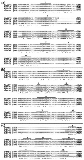 - Thompson, J.D.; Gibson, T.J.; Plewniak, F.; Jeanmougin, F.; Higgins, D.G. The CLUSTAL_X windows interface: Flexible strategies for multiple sequence alignment aided by quality analysis tools. Nucleic Acid Res. 1997, 25, 4876–4882. [Google Scholar] [CrossRef] [PubMed]
