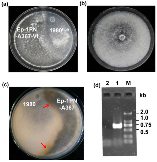 - Zhang, D.X.; Nuss, D.L. Engineering super mycovirus donor strains of chestnut blight fungus by systematic disruption of multilocus vic genes. Proc. Natl. Acad. Sci. USA 2016, 113, 2062–2067. [Google Scholar] [CrossRef] [PubMed]