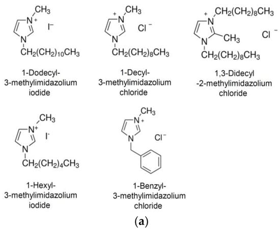 - Yoo, B.; Zhu, Y.; Maginn, E.J. Molecular mechanism of ionic-liquid-induced membrane disruption: Morphological changes to bilayers, multilayers, and vesicles. Langmuir 2016, 32, 5403–5411. [Google Scholar] [CrossRef] [PubMed]