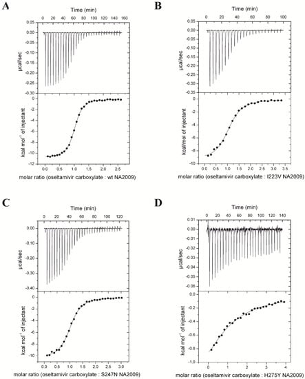 3.2. Neuraminidase Mutations Alter the Thermodynamic Parameters of Oseltamivir Binding