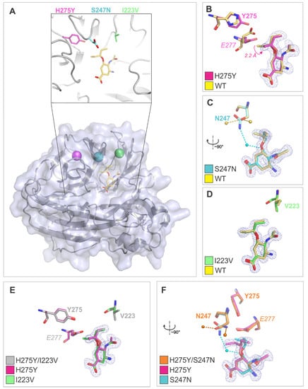 - Paradis, E.G.; Pinilla, L.T.; Holder, B.P.; Abed, Y.; Boivin, G.; Beauchemin, C.A.A. Impact of the H275Y and I223V mutations in the neuraminidase of the 2009 pandemic influenza virus in vitro and evaluating experimental reproducibility. PLoS ONE 2015, 10, e0126115. [Google Scholar] [CrossRef] [PubMed]