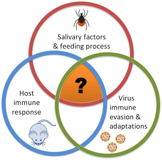 The I. scapularis salivary cystatin, sialostatin L2, suppresses the interferon response and enhances the replication of TBEV in mouse bone marrow-derived dendritic cells [14]. From these in vitro experiments, sialostatin L2 appears to be a novel tick salivary factor potentially responsible for SAT of TBEV; however, to date, no specific tick salivary gland factor (protein, nucleic acid, etc.) has been directly implicated in vivo for SAT of any TBFV. It is expected that a suite of salivary factors acting cooperatively are responsible for enhancing tick-borne virus transmission [9].
