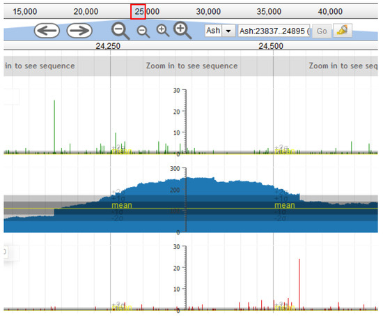 Read coverage map obtained from Pile-up Analysis Using Starts & Ends PAUSE. The direct terminal repeat sequence is located in the sharply delimited region of double coverage depth in clearly visible in the image.