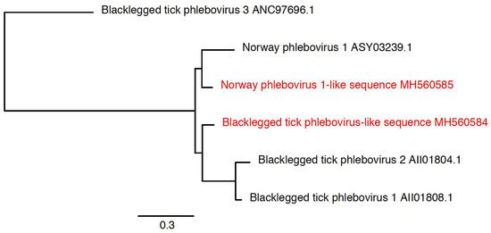 - Sakamoto, J.M.; Ng, T.F.F.; Suzuki, Y.; Tsujimoto, H.; Deng, X.; Delwart, E.; Rasgon, J.L. Bunyaviruses are common in male and female Ixodes scapularis ticks in central Pennsylvania. PeerJ 2016, 4, e2324. [Google Scholar] [CrossRef] [PubMed]