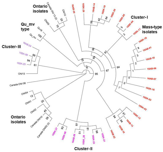 - Ojkic, D.; Binnington, B. Phylogenetic Analysis of Ontario Infectious Bronchitis Virus Isolates. In Proceedings of the 51st Western Poultry Disease Conference, Puerto Vallarta, Mexico, 1–5 May 2002; p. 73. [Google Scholar]