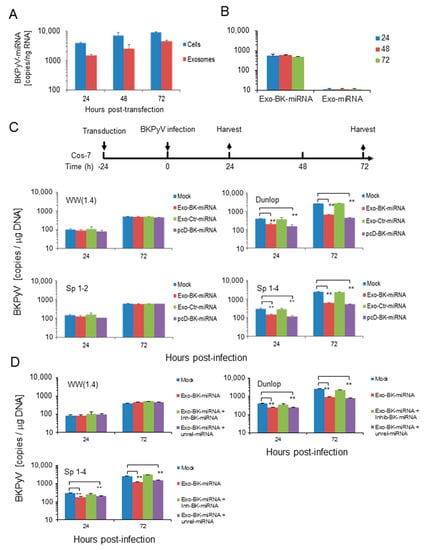 The following are available online at http://www.mdpi.com/1999-4915/10/9/466/s1, Figure S1: Size, concentration and markers of Cos-7 exosome enriched vesicles., Figure S2: Cells adsorption and penetration of exosomes enriched vesicles containing BKPyV miRNAs.