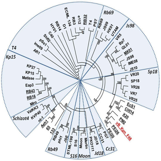 - Meier-Kolthoff, J.P.; Göker, M. VICTOR: Genome-based phylogeny and classification of prokaryotic viruses. Bioinformatics 2017, 33, 3396–3404. [Google Scholar] [CrossRef] [PubMed]