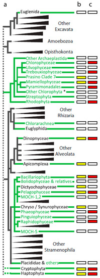 - Burki, F. The eukaryotic tree of life from a global phylogenomic perspective. Cold Spring Harb. Perspect. Biol. 2014, 6. [Google Scholar] [CrossRef] [PubMed]