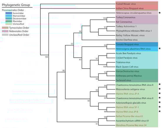 The following are available online at http://www.mdpi.com/1999-4915/10/9/487/s1, Supplemental Tables S1 and S2 contain the full information for amino acid sequences used to construct RdRP and polB phylogenetic trees, respectively.