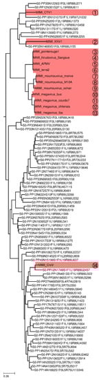 3.4. Phylogeny of Megaviridae polB Meta-Barcodes