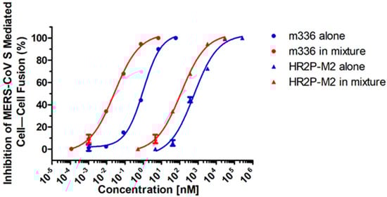 Strong synergism resulting from the HR2P-M2/m336 combination against MERS-CoV S protein-mediated cell–cell fusion.