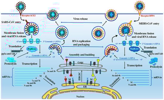 Both SARS and MERS cause severe pneumonia resulting from these novel coronaviruses, sharing some similarities in their pathogenesis (Figure 2) [].