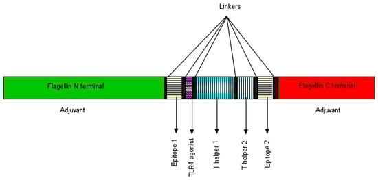 - Yang, J.; Zhong, M.; Zhang, Y.; Zhang, E.; Sun, Y.; Cao, Y.; Li, Y.; Zhou, D.; He, B.; Chen, Y.; et al. Antigen replacement of domains D2 and D3 in flagellin promotes mucosal IgA production and attenuates flagellin-induced inflammatory response after intranasal immunization. Hum. Vaccin. Immunother. 2013, 9, 1084–1092. [Google Scholar] [CrossRef] [PubMed]