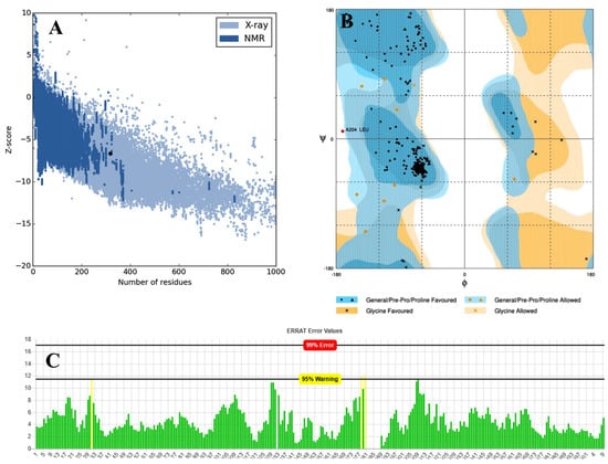 - Wiederstein, M.; Sippl, M.J. ProSA-web: Interactive web service for the recognition of errors in three-dimensional structures of proteins. Nucleic Acids Res. 2007, 35, W407–W410. [Google Scholar] [CrossRef] [PubMed]