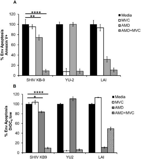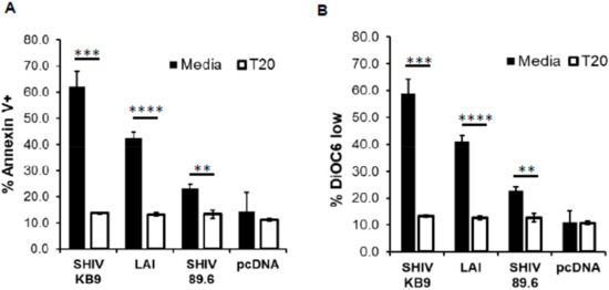3.5. SHIV-KB9 Env Utilizes both CCR5 and CXCR4 Equally for Apoptosis Induction