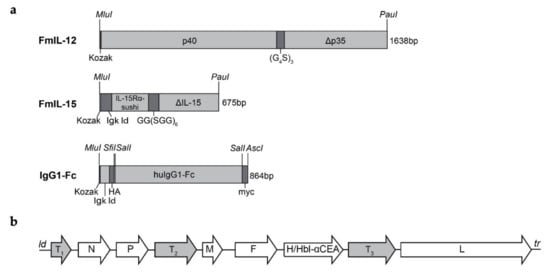 3.1. Oncolytic Measles Vaccines Encoding FmIL-12 or FmIL-15