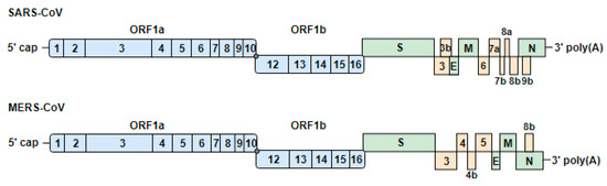 - Menachery, V.D.; Mitchell, H.D.; Cockrell, A.S.; Gralinski, L.E.; Yount, B.L.; Graham, R.L.; McAnarney, E.T.; Douglas, M.G.; Scobey, T.; Beall, A.; et al. MERS-CoV Accessory ORFs Play Key Role for Infection and Pathogenesis. MBio 2017, 8. [Google Scholar] [CrossRef]