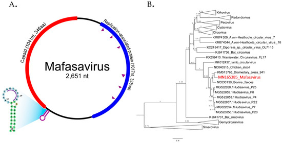 - Varsani, A.; Krupovic, M. Smacoviridae: A new family of animal-associated single-stranded DNA viruses. Arch. Virol. 2018, 163, 2005–2015. [Google Scholar] [CrossRef]