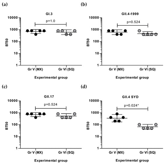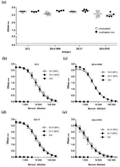 3.2. Sequential Immunization with Genetically Distant and Closely Related NoV VLPs