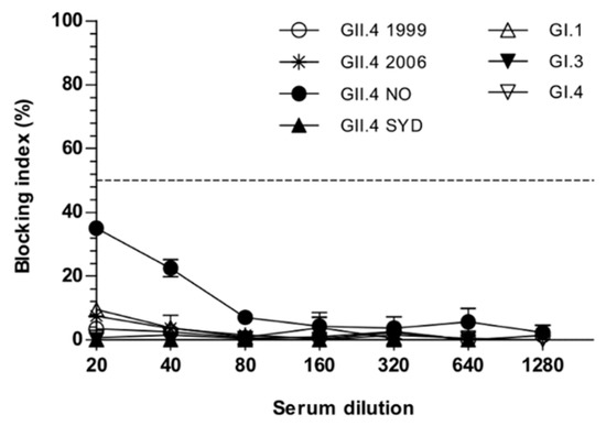 - Blazevic, V.; Malm, M.; Vesikari, T. Induction of homologous and cross-reactive GII.4-specific blocking antibodies in children after GII.4 New Orleans norovirus infection. J. Med. Virol. 2015, 87, 1656–1661. [Google Scholar] [CrossRef]