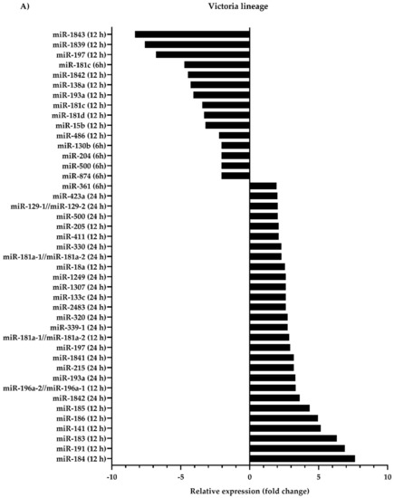 - Khongnomnan, K.; Poomipak, W.; Praianantathavorn, K.; Saengchoowong, S.; Pisitkun, T.; Poovorawan, Y.; Payungporn, S. Human MicroRNAs expression profiles in influenza B virus-infected cells based on Illumina MiSeq platform. Microrna 2018, 7, 204–214. [Google Scholar] [CrossRef]