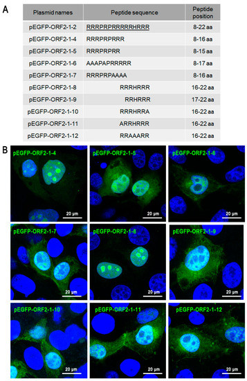 - Shuai, J.; Wei, W.; Jiang, L.; Li, X.; Chen, N.; Fang, W. Mapping of the nuclear localization signals in open reading frame 2 protein from porcine circovirus type 1. Acta Biochim. Biophys. Sin. (Shanghai) 2008, 40, 71–77. [Google Scholar] [CrossRef][Green Version]