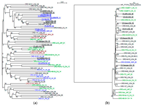However, a few sequences remained undifferentiated, located near the center of the graph (VSD strains: Mimi, Ukos, Deuce and for ORD strains: Kit426, NH7, Gon, um3, 796, NH8, SH-2014).