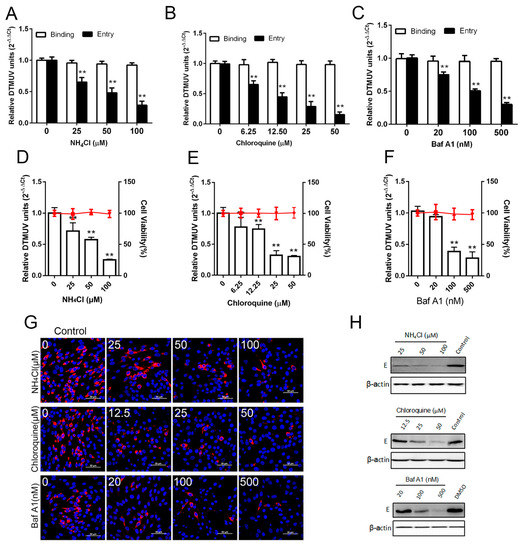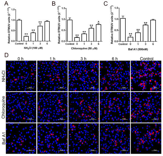 3.2. Lysosomotropic Agents Act at an Early Time Point in DTMUV Infection