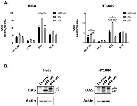 3.2. Effect of OAS1 p46 and p42 on Mitochondrial OCR
