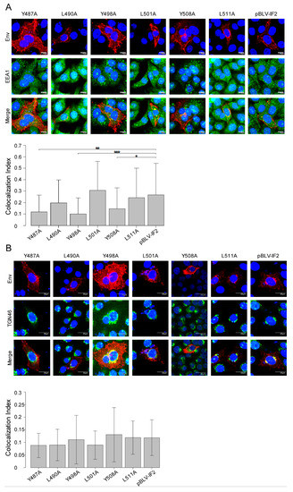 3.4. Localization of gp51 Decreases at the Early Endosome Despite no Effects at the Trans-Golgi Network by Tyrosine Mutant Forms of the Infectious Molecular Clone pBLV-IF2