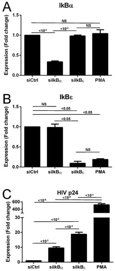 3.2. IκBα and IκBε siRNA Transfection and IκBα and IκBε and HIV Protein Expression