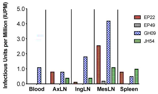 3.5. The Size of Viral Latent Reservoir Was Higher in Mesenteric LN Than Other Tested Tissues