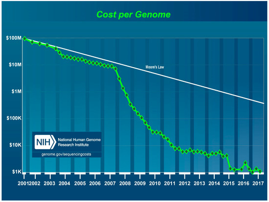 - Wetterstrand, K.A. DNA Sequencing Costs: Data from the NHGRI Genome Sequencing Program (GSP). Available online: www.genome.gov/sequencingcostsdata (accessed on 21 January 2019).