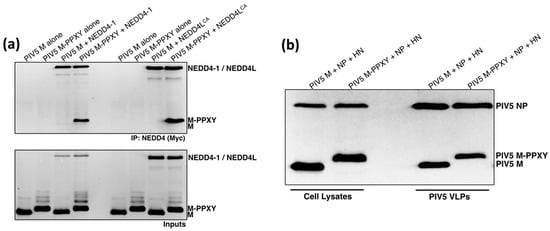 The plasmids pCAGGS-PIV5 M, pCAGGS-PIV5 NP, and pCAGGS-PIV5 HN have been described before [], as have plasmids pCAGGS-MuV M, pCAGGS-MuV NP, and pCAGGS-MuV F []. pCAGGS-PIV5 M-PPXY was generated by PCR modification of pCAGGS-PIV5 M to append the Rous sarcoma virus late domain (amino acid sequence TASAPPPPYVG) to the C-terminal end of M.