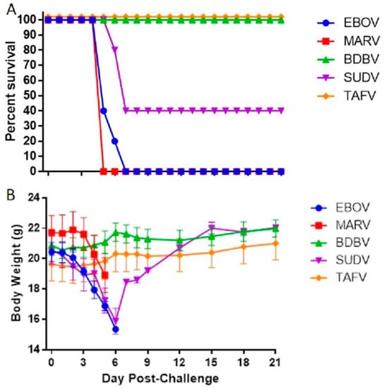 - Cross, R.W.; Fenton, K.A.; Geisbert, T.W. Small animal models of filovirus disease: Recent advances and future directions. Expert Opin. Drug Discov. 2018, 13, 1027–1040. [Google Scholar] [CrossRef] [PubMed]