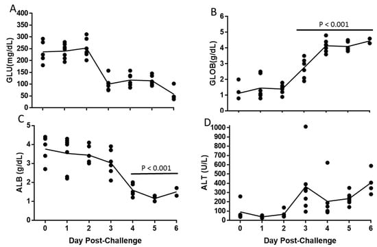 3.4. Alteration of Hematologic and Liver Parameters During the Course of EBOV Infection in IFANGR KO Mice