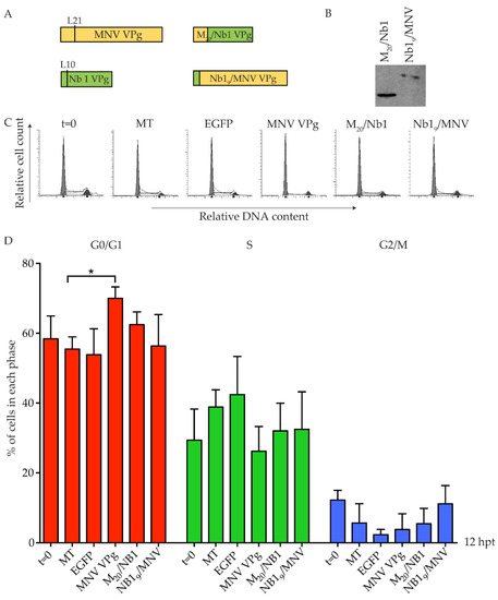 - Davies, C.; Ward, V.K. Expression of the NS5 (VPg) Protein of Murine Norovirus Induces a G1/S Phase Arrest. PLoS ONE 2016, 11, e0161582. [Google Scholar] [CrossRef] [PubMed]