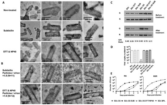 3.3. Removal of G from RABV Virion by Subtilisin Digestion or DTT/NP40 Treatment