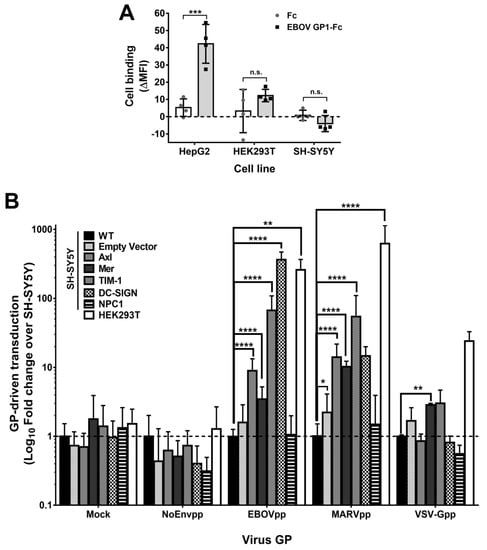 3.9. Diverse Cell Surface Factors Can Overcome the Block to Filovirus GP-Driven Cell Entry in SH-SY5Y Cells