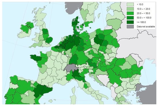 - Eurostat. Statistical Atlas. Eurostat Regional Yearbook 2014; Chapter 11: Agriculture; 11.6: Pigs. 2014b. Available online: http://ec.europa.eu/eurostat/statistical-atlas/gis/viewer/?config=RYB-2014.json (accessed on 4 February 2019).