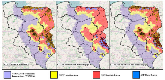 - General Veterinary Inspectorate (GVI). African Swine Fever Reports in Poland. 2018. Available online: https://www.wetgiw.gov.pl/nadzor-weterynaryjny/asf-w-polsce (accessed on 4 February 2019).