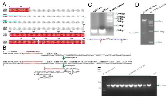 2.7. Specific Cleavage of pTGEV-GFP BAC by the CRISPR/Cas9 System In Vitro