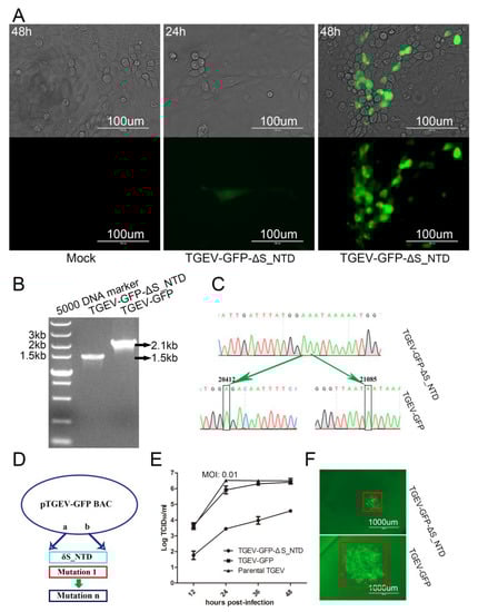 3.3. Recovery and Characteristics of the Mutant Virus TGEV-GFP-ΔS_NTD in PK-15 Cells
