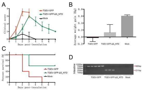4.2. S_NTD224 of TGEV Had a Mild Influence on TGEV Virulence but Was Not the Enteric Tropism and Virulence Determinant