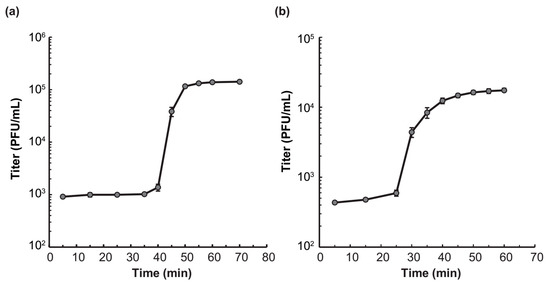 - Kropinski, A.M. Practical advice on the one-step growth curve. Methods Mol. Biol. 2018, 1681, 41–47. [Google Scholar]