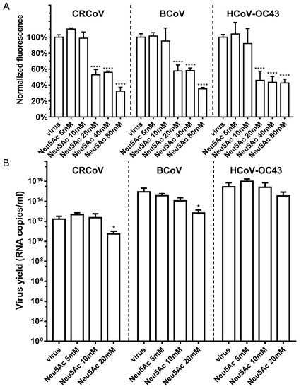 3.2. SAs Did Not Facilitate Entry of CRCoV, BCoV, and HCoV-OC43 VR-1558 to HRT-18G Cells