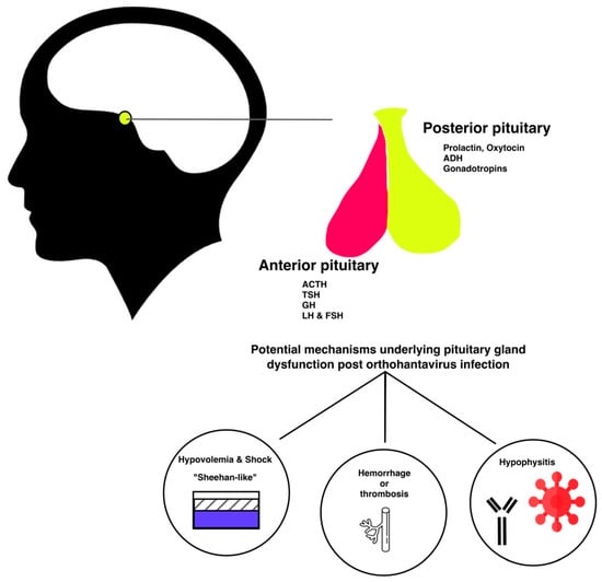 Bhoelan, S.; Langerak, T.; Noack, D.; van Schinkel, L.; van Nood, E.; van Gorp, E.C.M.; Rockx, B.; Goeijenbier, M. Hypopituitarism after Orthohantavirus Infection: What is Currently Known? Viruses 2019, 11, 340. https://doi.org/10.3390/v11040340