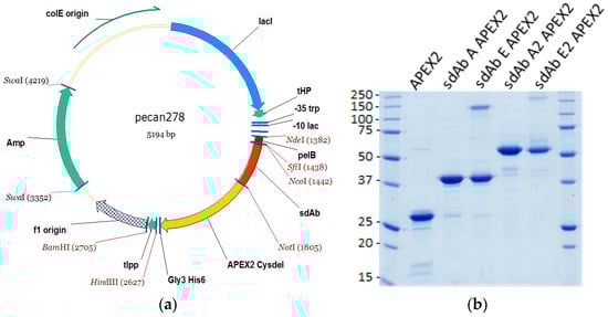 2.2. Production and Purification of APEX2, sdAb–APEX2, and sdAb Proteins