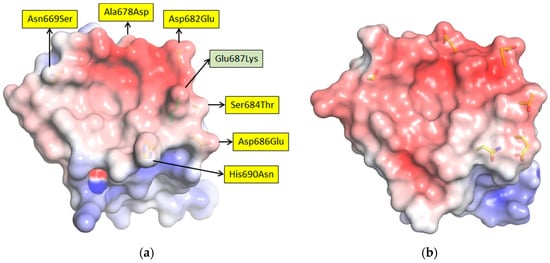 Reference to interaction maps generated through PDBSum [29] also reveals details of the nature of direct contacts between sdAb and NP residues that may be impacted in transitioning from MARV to MLAV (Figure 11). SdAb A appears to interact with only 4 of the 6 variable amino-acids, while sdAb B and C utilize 5. For sdAb A, only 1 of the 4 residues appears a major contact; His690Asn may impact the non-bonded contacts and two hydrogen bonds occurring with Thr53 of CDR1. For sdAb B, the double salt-bridging and hydrogen bonding between Arg58 of CDR2 on Asp682 may still occur on the bulkier extension to Glu, and Ser684Thr hydrogen bonding may likewise proceed. For sdAb C salt-bridging disruption of Lys1 with Asp686Glu might occur, though this varies between the chains analyzed in the lattice, suggesting some leeway here. Though the other interactions are predicted to be fairly minor for sdAb C, we know that this is the worst performer on Western blotting (A > B > C from Figure 1e of [18]) and may well be more conformationally sensitive to minor changes in antigen structure, also contributing to the dramatic loss in binding to MLAV.